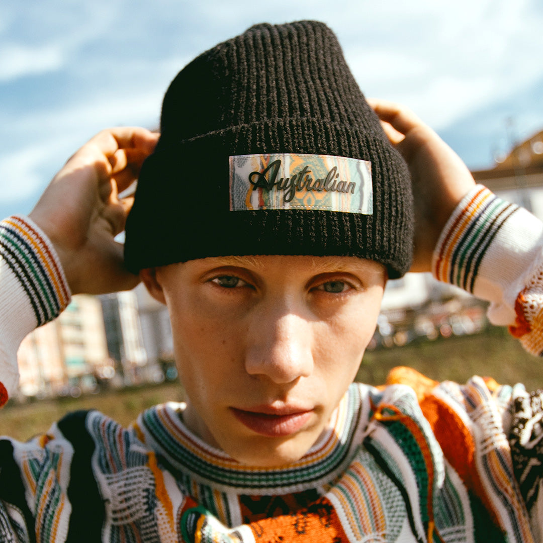 Accanto al maglione, la capsule include track jacket, t-shirt e polo in jersey: silhouette sportive che incontrano le grafiche distintive Carlo Colucci, adattate a tessuti tecnici con un risultato potente ma bilanciato. Non mancano una giacca e un pantalone total black, arricchiti dalla banda laterale Australian x Colucci: un dettaglio iconico che unisce performance e riconoscibilità.