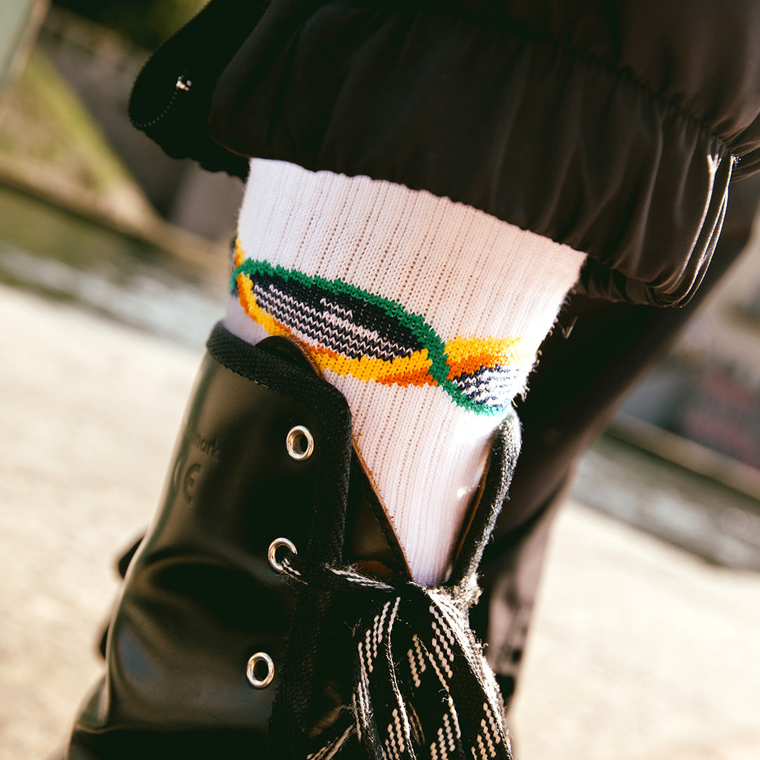 A completare la collab, beanie, bucket hat e calze riprendono colori e fantasie della collezione. Ogni accessorio è un manifesto di stile, pensato per chi vuole distinguersi fino all’ultimo dettaglio.