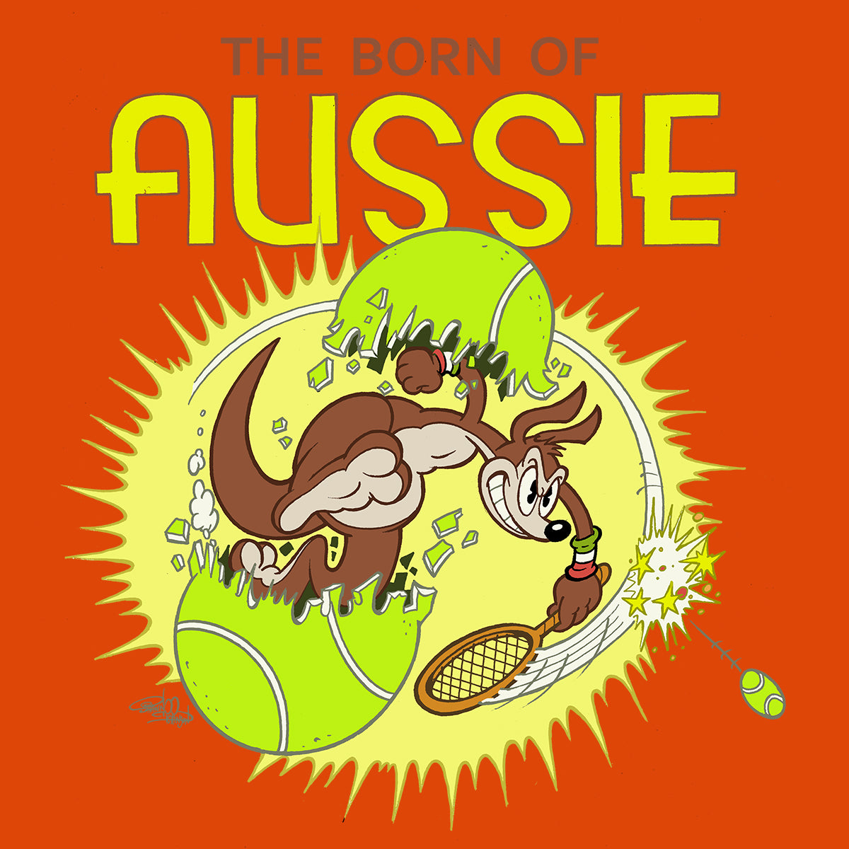 II progetto si apre con due stampe esclusive firmate dall’illustratore Shawn Dickinson, noto per il suo stile vintage ispirato ai cartoon della Golden Age di Hollywood e alla cultura rock ‘n’ roll, hot rods e surf tipica della sua terra natale, la California del Sud. Le due opere, "BATTLE" e "THE BORN OF AUSSIE", raccontano una storia surreale e dinamica ambientata nel mondo del tennis, con un protagonista d’eccezione: un piccolo canguro.